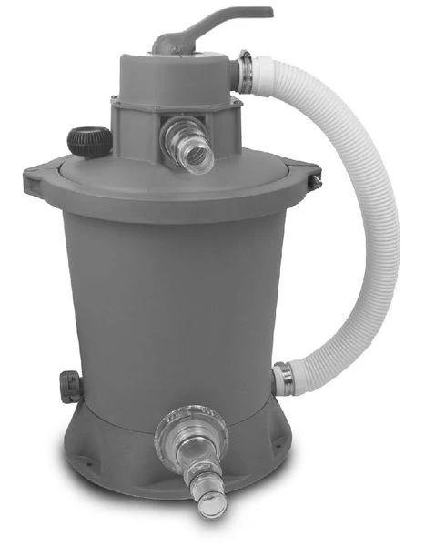 De meegeleverde zandfilterpomp zorgt voor een effectieve filtering van vuildeeltjes in het water. Dit watercirculatiesysteem pakt zelfs de kleinere deeltjes aan en is veel effectiever dan een filterpomp met cartridges. In het filtermateriaal blijft vuil zoals zand, algen en insecten achter. Zo weet je zeker dat een frisse duik in dit zwembad ook echt een frisse duik blijft. De zandfilterpomp heeft een capaciteit van 3785 liter per uur, waardoor de volledige inhoud in ongeveer 5 uur wordt rondgepompt. Deze zandfilterpomp wordt geleverd zonder het benodigde filterzand, vergeet dit niet bij je bestelling mee te bestellen. Voor deze zandfilterpomp heb je 10 kg filterzand nodig.